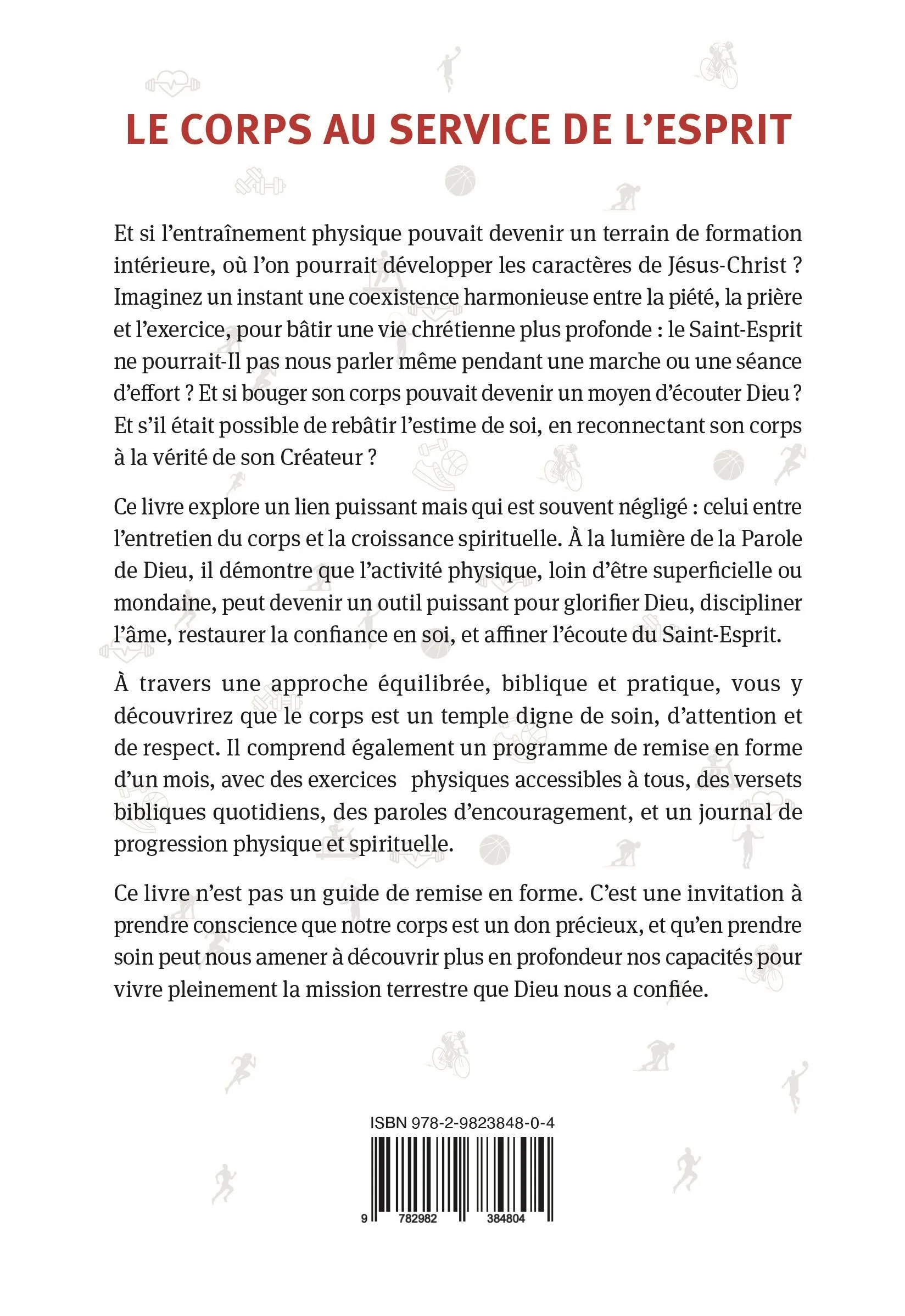 Ce livre explore un lien puissant mais qui est souvent négligé : celui entre l’entretien du corps et la croissance spirituelle. À la lumière de la Parole de Dieu, il démontre que l’activité physique, loin d’être superficielle ou mondaine, peut devenir un outil puissant pour glorifier Dieu, discipliner l’âme, restaurer la confiance en soi, et affiner l’écoute du Saint-Esprit.